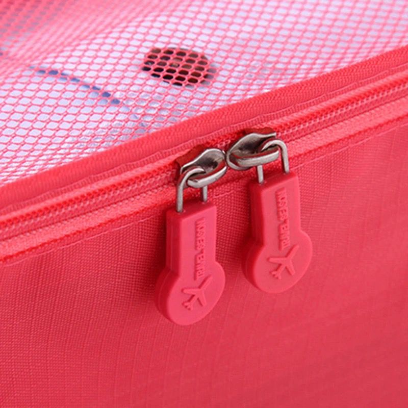 El gran volumen interior guarda toda su ropa de viaje, calzado, maquillaje, accesorios para afeitarse y mucho más. Múltiples bolsas de malla para organizar y separar su artículo, el material suave garantiza que su ropa no se arrugue. Los de viaje dividen su ropa en secciones, diferentes bolsos para cada día del viaje o para cada miembro de la familia, también se utilizan para separar la ropa sucia y la ropa húmeda mediana. Mantenga su equipaje limpio y ordenado.—Material: Poliéster