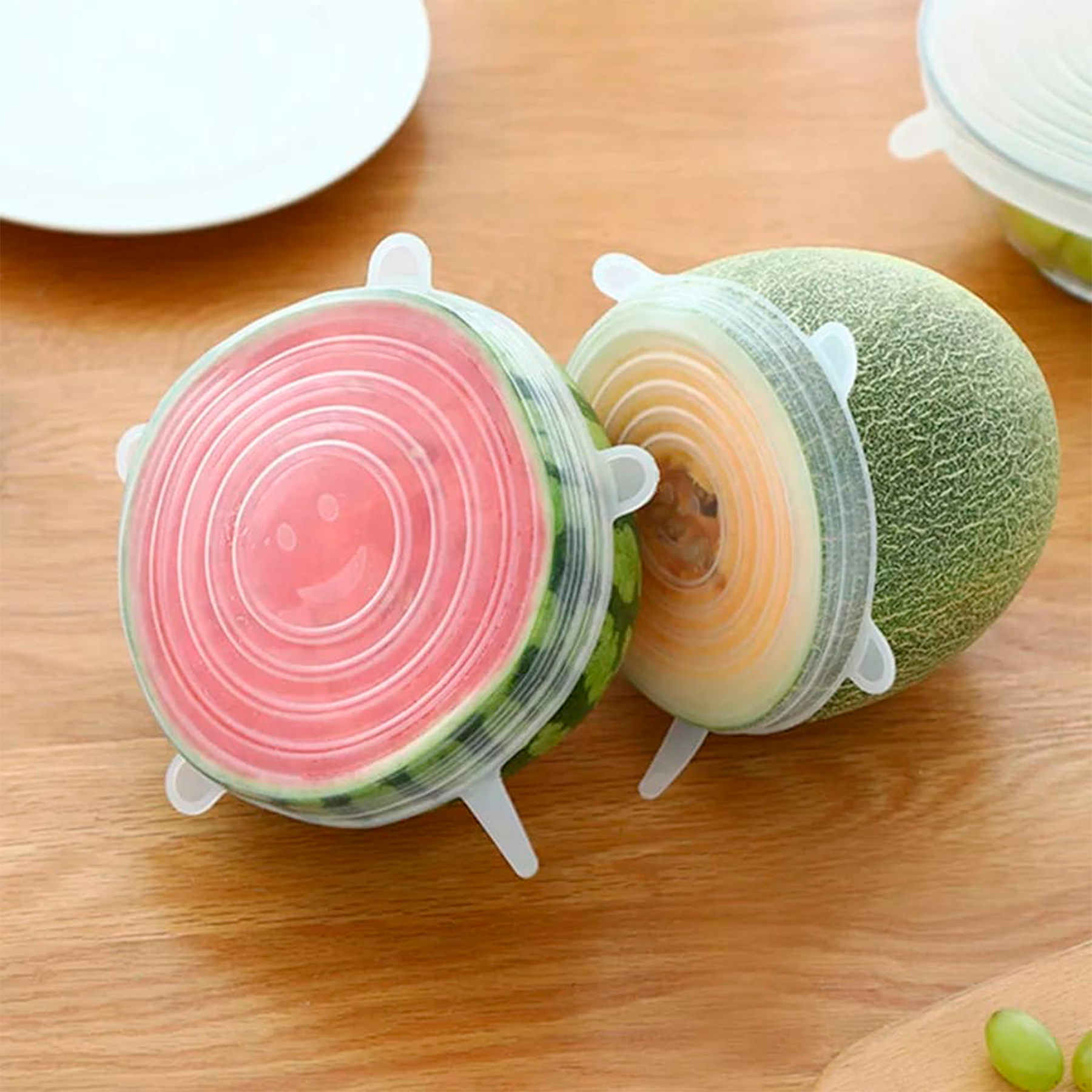 Estas tapas elásticas de silicona se adaptan fácilmente a cualquier recipiente, fruta o verdura, manteniendo tus alimentos frescos por más tiempo.